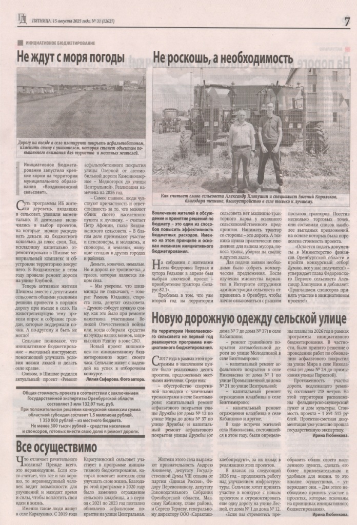 «Специальный репортаж». Реализация программы «Инициативное бюджетирование» в Саракташском районе